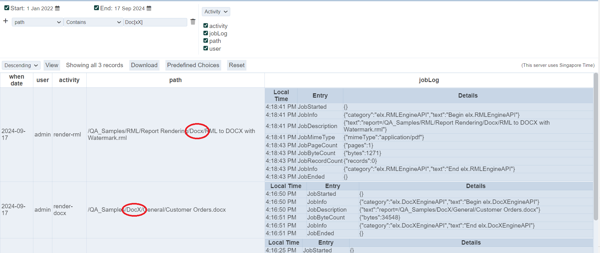 Click on the “View” button to re-generate the log. Now the records with “render-rml” are removed.
