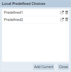 “Delete” icon on the right of the desired choice. The predefined choice will be removed from the list. Click on the “Close” button to close the dialog box.