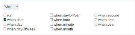 To go to the “When” page, click on “Activity” and select “When”. The fields available for “When” will appear. Select or unselect the fields according.