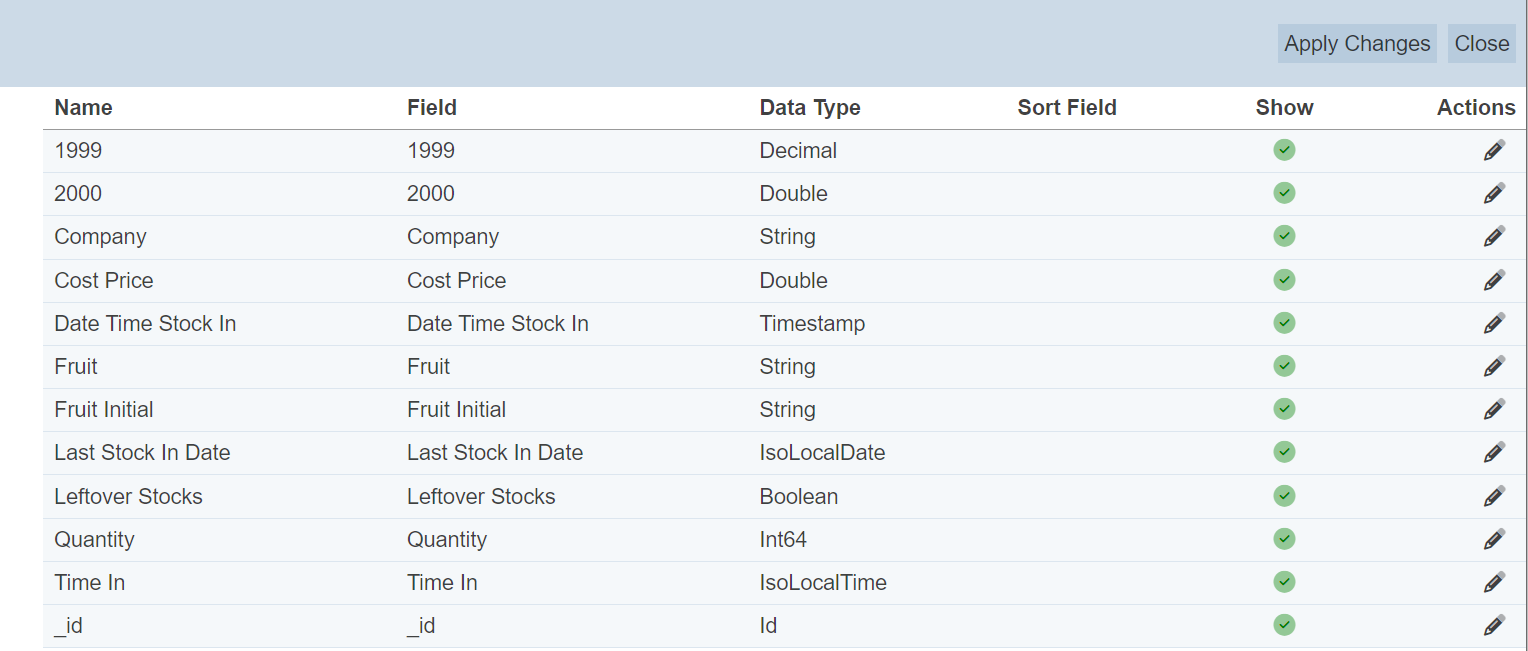 This feature allows user to edit the fields in the dataset selected. To edit the report, click on the