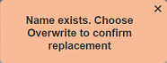 If the name already exist or the name is left blank, the relevant error message will appear.