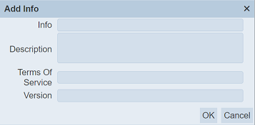 To add an object, click on the “+” icon next to desired object. The dialog box will appear. In this example, the “Info” object is selected.