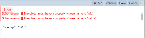 In either way, the code can be edited as desired. The first line of code (default) in the API is always "openapi" : "3.0.0, the version currently supported.