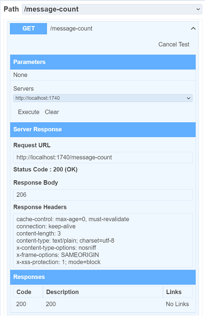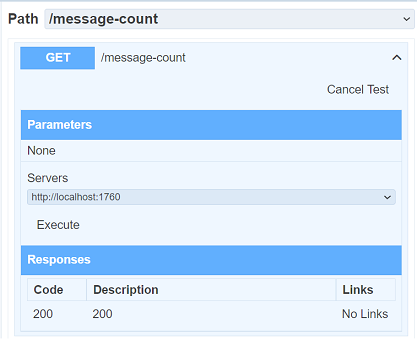 User can abort the test by clicking on the “Cancel Test” button in the “GET” section. Depending on the parameters of the API, select the desired value. In this example, select the desired server. Click on the “Execute” button to execute the API.