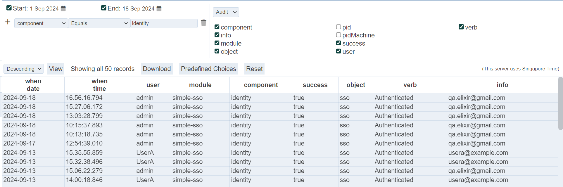 Click on the search button and the logs related to Users module will appear. The logs shows the following: