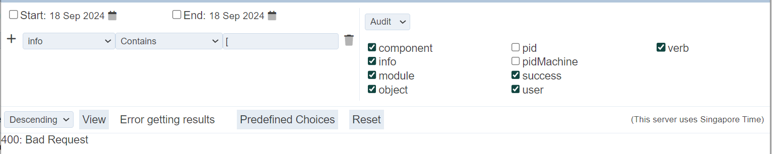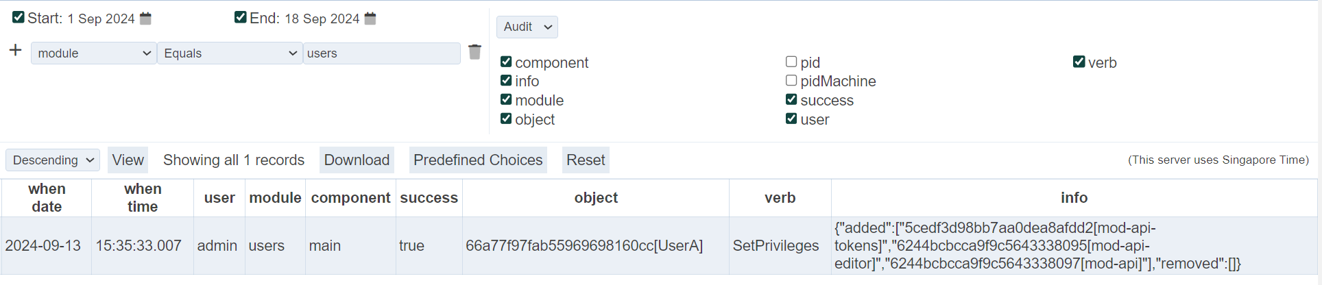 To view the logs for the user changes, select the desired date range and add the desired criteria.
