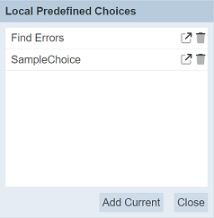 “Delete” icon on the right of the desired choice. The predefined choice will be removed from the list. Click on the “Close” button to close the dialog box.