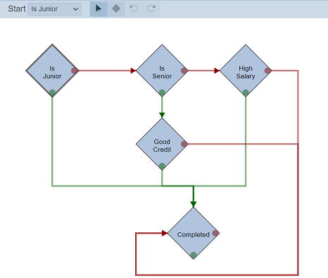 If it returns true, move to “Good Credit” rule, else move to “High Salary” rule. If it is moved to the “Good Credit” rule, and if the logic in the rule returns true, the flow will goes to the “Completed” rule with the JSON record in its logic.