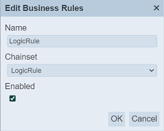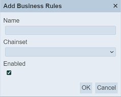 In the dialog box, key in an unique name for the new Business Rules record in the “Name” field. It is case-sensitive. Select the desired ETL chainset from the drop-down list in the “Chainset” field. The “Enabled” field is selected by default. Do note that ETL can only access enabled record.