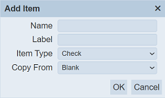 To add a new item, click on the “+” icon in the top row. A “Add Item” dialog box will appear.