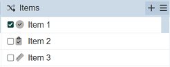 The Items panel in the designer contains of a top row and a lower panel that lists the items for the section selected in the Checklist Sections panel.