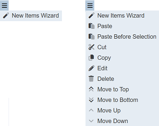 To add a new item using the wizard, click on the “More Actions” icon in the top row and select “New Items Wizard” option.