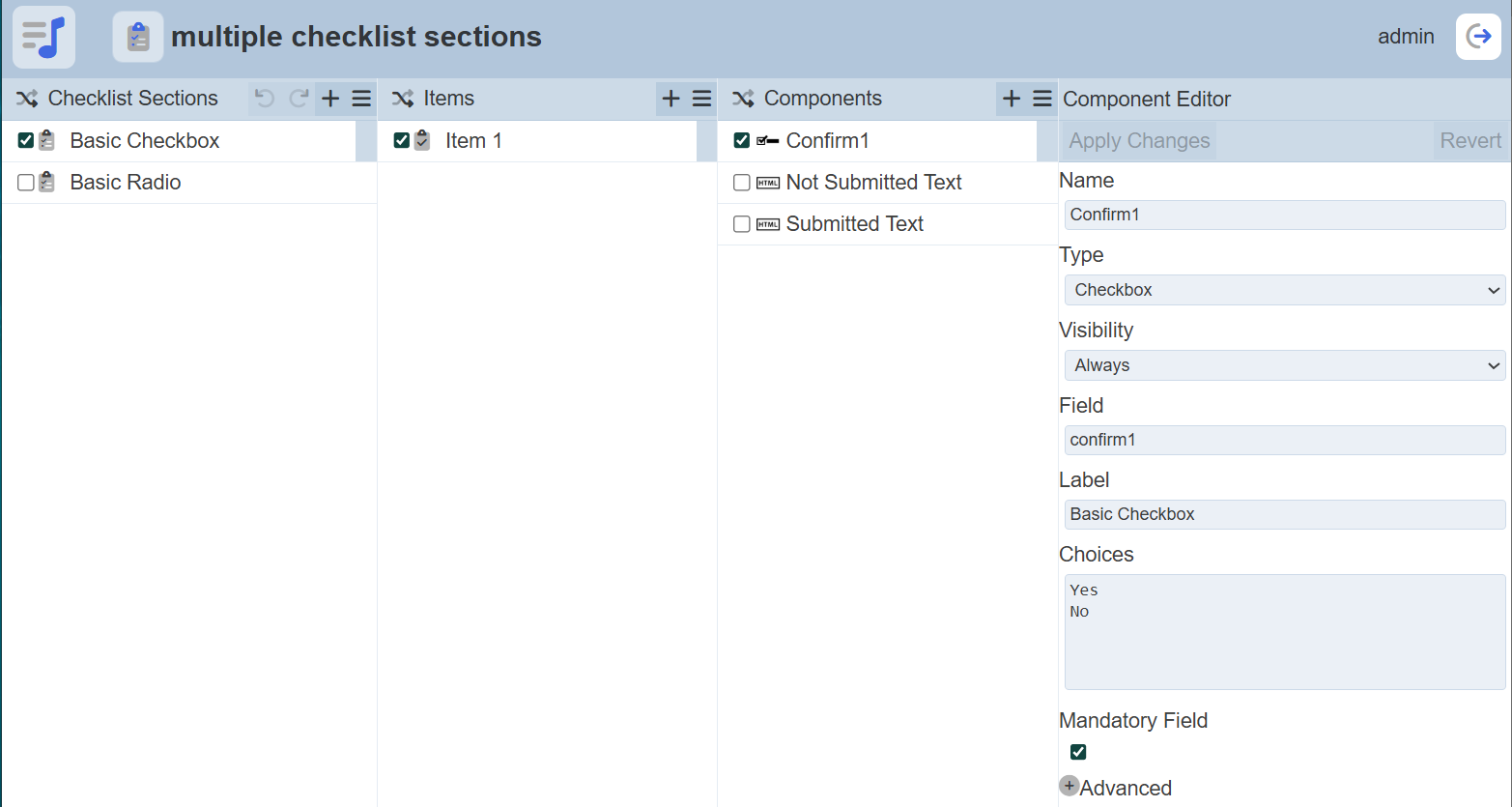 In this Checklist Designer page, you can edit, add, delete fields and their data types, etc.