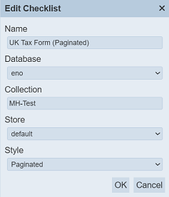 | Style | Selects the the style of the checklist. | Y | Select | One value can be selected. Options are: - Paginated - Paginated Sequential - Non Paginated |
