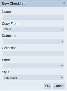 | Database | Selects the database to be used with the checklist. | Y | Select | Select from drop-down list | None |