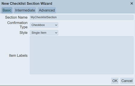 If the checklist has not been setup, the “New Checklist Section Wizard” will appear. See Checklist Section Wizard for more details.