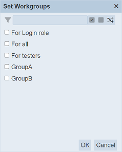 To set the workgroups to be associated with the selected checklists, click on the “More Actions” button and select the “Set Workgroups” option. The “Set Workgroups” dialog box will appear.