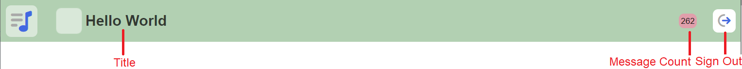 Below is an example of an Ambience Header component with title, message count and services icon.