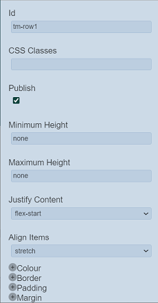 | Align Items | Defines how the content is aligned. Available options: - baseline - center - flex-start - flex-end - stretch |