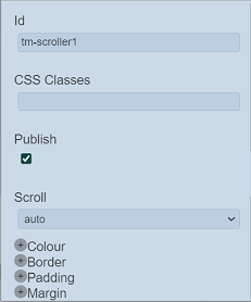| Id | Name of the Scroller that will be displayed in the tree structure. | “tm-scrollerX” |