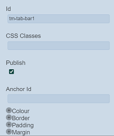 | Id | Name of the Tab Bar that will be displayed in the tree structure. | “tm-tab-barX” |