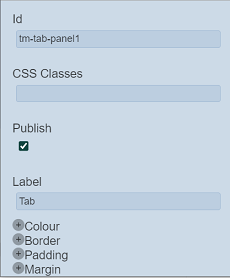 | Label | Name of the Tab Panel that will be displayed in the template/page. | “Tab” |