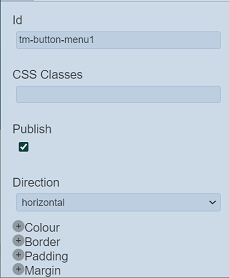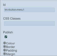 | Id | Name of the Responsive Button Menu that will be displayed in the tree structure. | “tm-rbutton-menuX” |