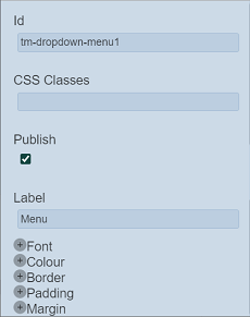 | Id | Name of the Drop Down Menu that will be displayed in the tree structure. | “tm-dropdowm-menuX” |