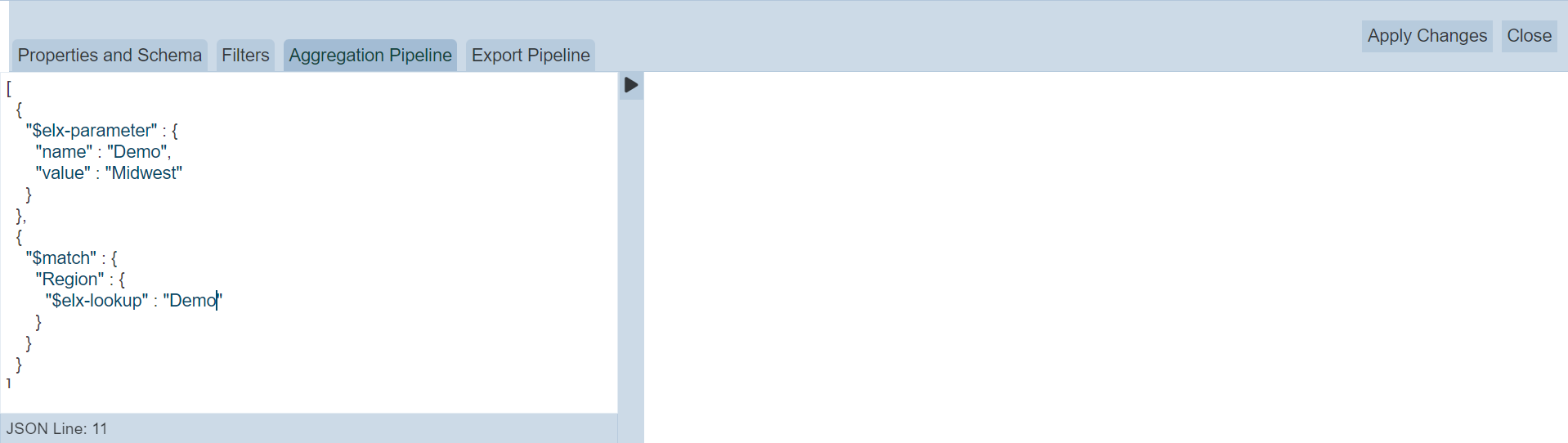 Prior setting up the Fixed Parameter Control, the dataset need to setup the aggregation pipeline. Below is an example on how to setup aggregation pipepline for a dataset.