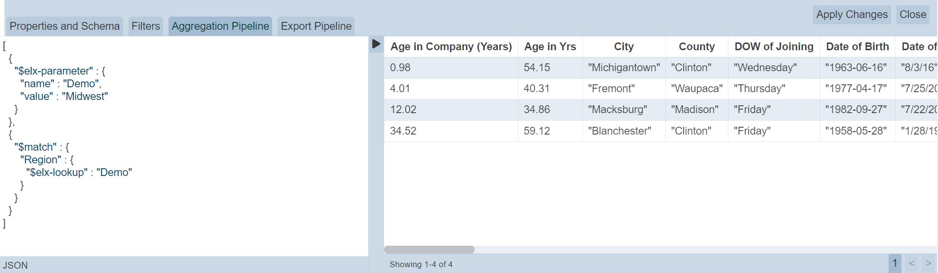 In the above code, the parameter “Demo” will look for the matching “Region” field as in the data collection. The value for parameter “Demo” is set as “Midwest”.