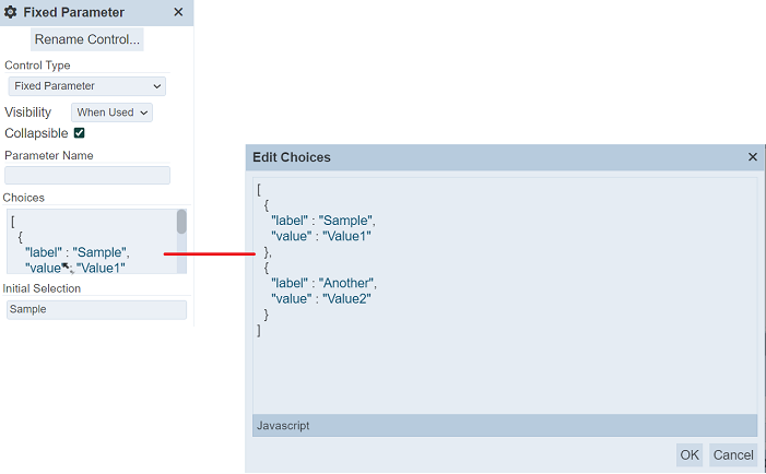 | Initial Selection | Determines the initial value of the filter control upon expanded for selection. | N | Textbox | One of the choices in the “Choices” field | Sample Corresponds to the first label in “Choices” field |