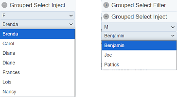 This inject control is commonly used to pass a value in document structure to other Ambience components as a child element of $elx-etl-inject. When used on the Viewer, this has a two-tier tree structure, using another dataset field as the first-tier values to group the actual options on the second tier. Only the selected value on the second tier are passed, following the format below: