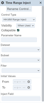 | Initial Values | Determines the initial set or selected values upon loading in the Dashboard Viewer. | Y | Time range (“From” and “To”) | The actual values set would be displayed on the Viewer. Hour, minute and period must be populated to make the entire value valid. | “–:– –” for both “From” and “To” |