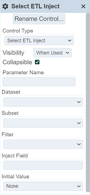 This inject control is commonly used to pass a value in document structure to other Ambience components as a child element of $elx-etl-inject. When used on the Viewer, this provides a selector, of which the selected value is passed as the inject parameter value.
