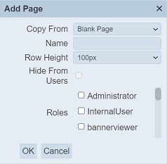 Upon clicking on the “OK” button, the new page would be added and rendered (user would be on the newly created page). Clicking on the “Cancel” button aborts the action.
