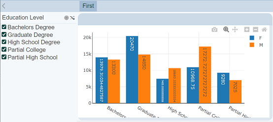 Deselect a few options on the “Education Level” filter. The view gets live updates per change made to the selected filter options.