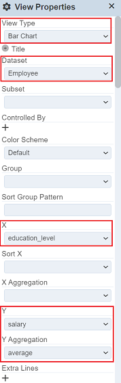 | X | Field name on the selected dataset to be used as the X values. | “education_level” |
