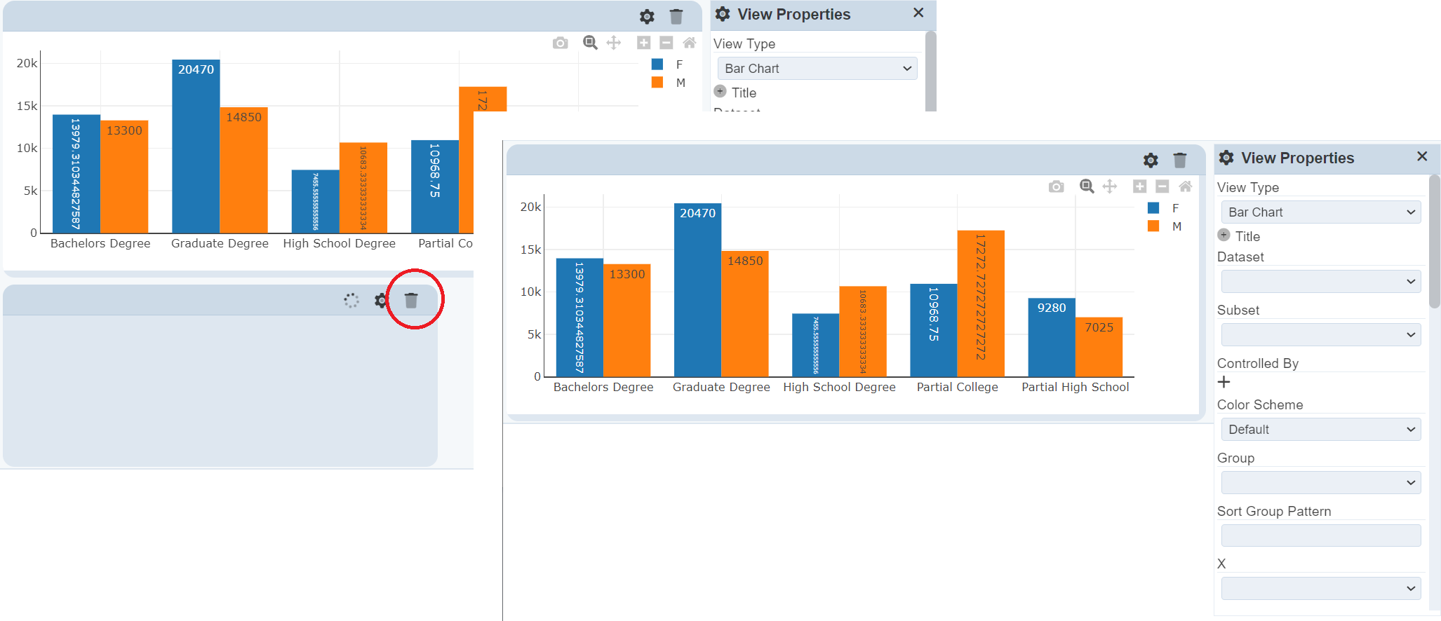 To demonstrate this, drag the blank view to the right, past the bar chart. Drag the view from the title bar to move the view.