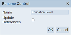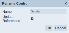 The same constraints applied to the name in the Add Control guide are applied. “Gender” is used as the new control name in this example. If the Update Reference checkbox is selected, the new name would be reflected in all views that are currently linked to the control. This means that the changes made to the control would be applied to all the views that are using it. For this example, tick select the checkbox. Click on the “OK” button. Clicking on the “Cancel” button aborts the action.