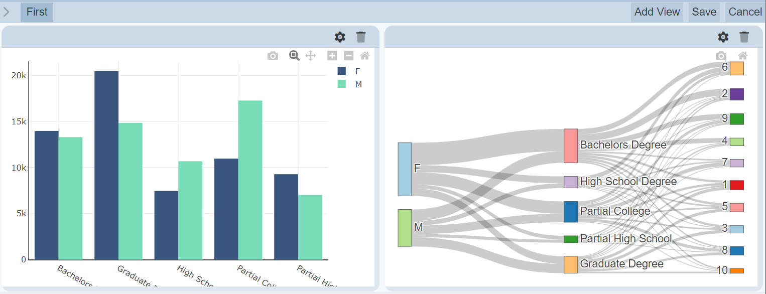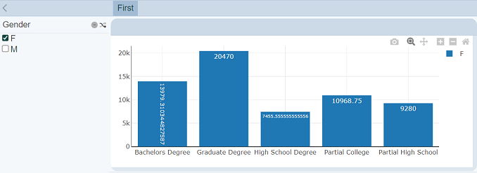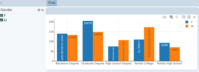 | Filter | Field name on the selected dataset to be used as filter options. | “education_level” |