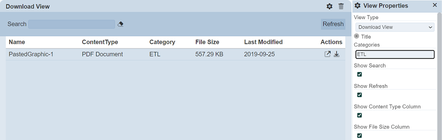 The other property fields are available to enhance the view. Below are the other properties in the View Properties box for the download view.