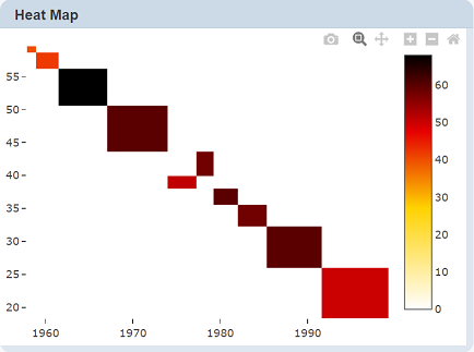 A heat map shows the magnitude of a phenomenon as color in two dimensions.