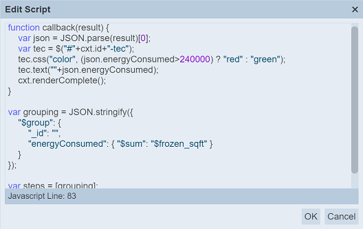 | Script | Defines the script to display the value in the view. | Yes |