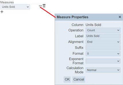 “Properties” icon next to the desired field to display the “Measure Properties” dialog box.