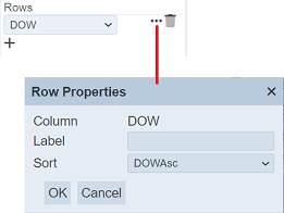 To sort the days, in the Row Properties, select a field that corresponds 1:1 to the “DOW” field. In this case, “DOWAsc” is selected to sort the days from “Monday” to “Sunday”.