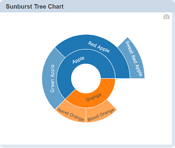 A sunburst tree chart is used to visualize hierarchical data structures. It consists of an inner circle surrounded by rings of deeper hierarchy levels.