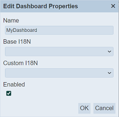 | Enabled | Indicates if the dashboard is enabled (selected) or disabled (unselected). | Y | Checkbox | True (selected) or false (unselected) | True (selected) |