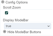 Hide Modebar Buttons allows you to choose which buttons (icons) to include in the Modebar. By default commonly used icons are unselected, which means they will be displayed in the Modebar if the Modebar is enabled.