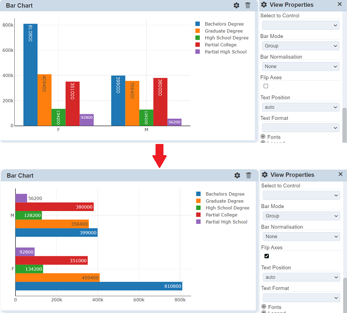 This property allows switching the X and Y axis on display. This property is only available on the bar chart.
