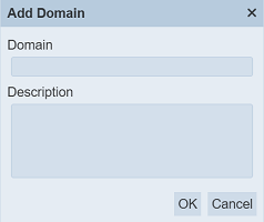Add a unique name in the “Domain” field. This field must be unique and is case-sensitive. Provide a brief description for the new domain in the “Description” field.